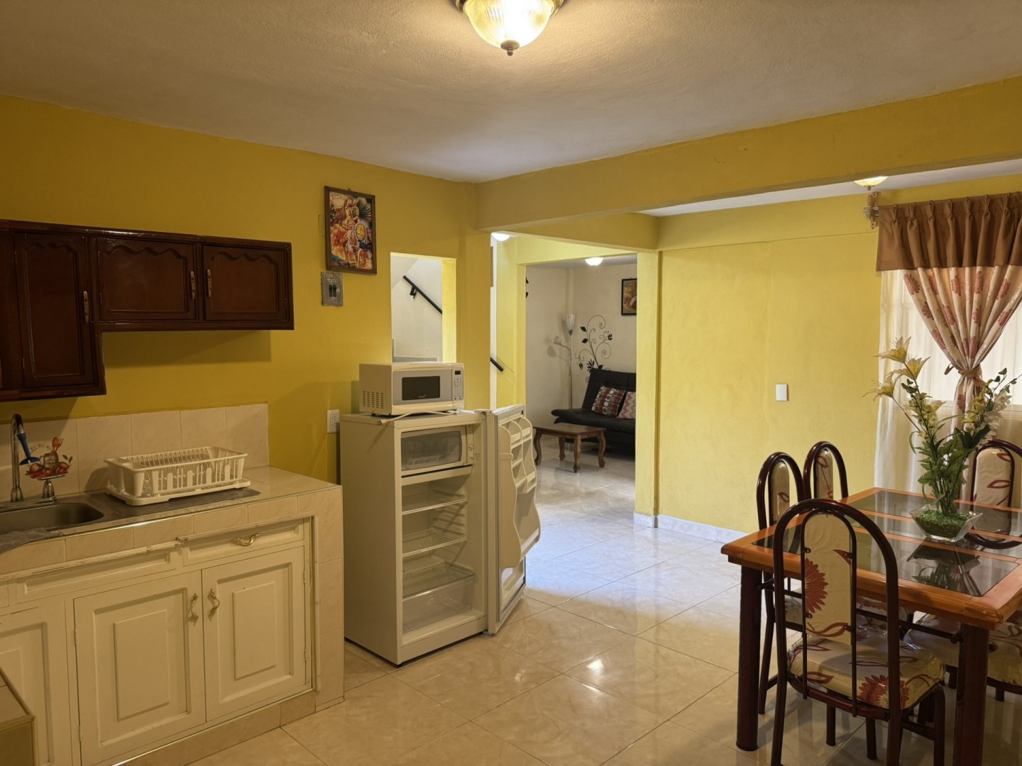 Amplia villa familiar tipo departamento ideal para grupos o familias. Cuenta con tres camas matrimoniales y una cama individual, sala de estar, comedor, cocina equipada para uso básico, un baño completo y medio baño adicional. Dispone de televisión, conexión Wi-Fi, agua caliente y mobiliario funcional para una estancia cómoda. Es una excelente opción para quienes buscan mayor espacio, privacidad y practicidad durante su visita.
